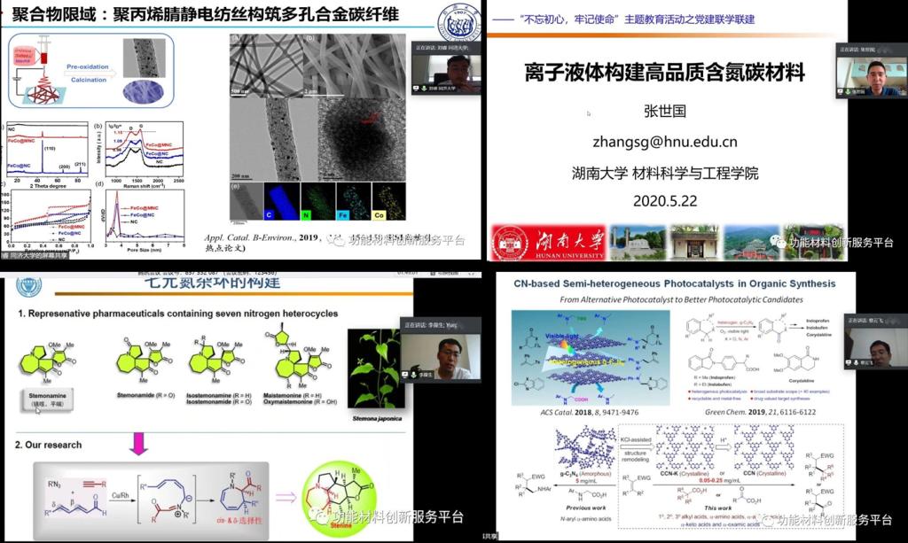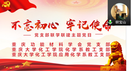 5月22日下午,3003新葡的京集团网址化学系教工支部、应化系教工支部联合重庆功能材料学会党支部,开展了“不忘初心、牢记使命” 党支部联学联建特色主题党日活动。本次活动在特殊时期创新形式,采用了腾讯会议室的网络平台,实现了与外地高校及学会的党员同志直接互动互联。参加本次组织生活的除了化学系教工支部及应化系教工支部党员之外,还包括重庆功能材料学会秘书长聂尊誉、同济大学刘睿教授、湖南大学张世国教授等学会支部的党员同志代表。同时,本次活动特别邀请了3003新葡的京集团网址党委书记刘仁龙以及3003新葡的京集团网址副院长胡宝山参加,并分别致欢迎辞与活动总结。