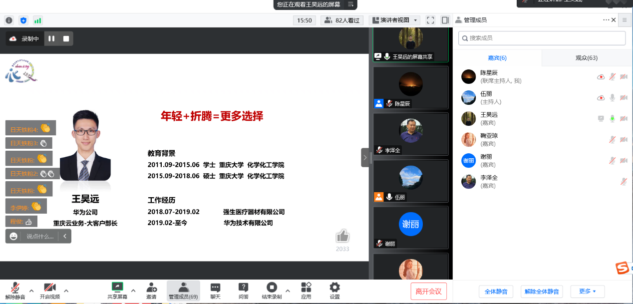 本次分享会的主题是:“年轻+折腾=更多的选择”。王昊远首先回忆起他在大学时学习竞赛、学生工作、暑期社会实践、合伙创业等经历,鼓励在校生以积极乐观的年轻心态尝试新鲜事物,发现自己的短板,不断练习积累提高自己的综合能力,还要加强与同龄人之间的交流,增强与同学和朋友的感情积淀,这对于未来的发展是一笔宝贵的财富。